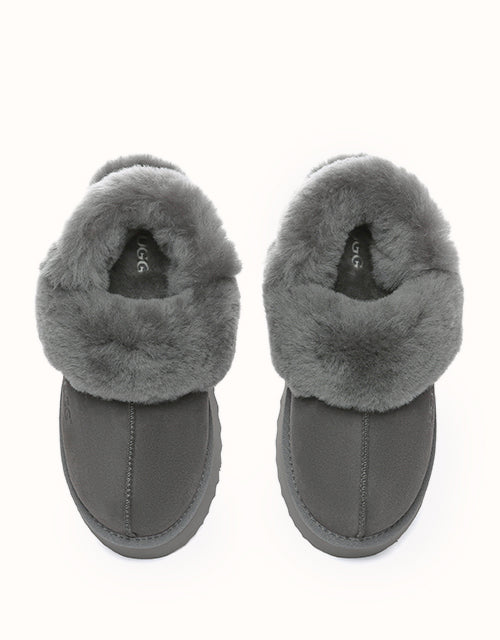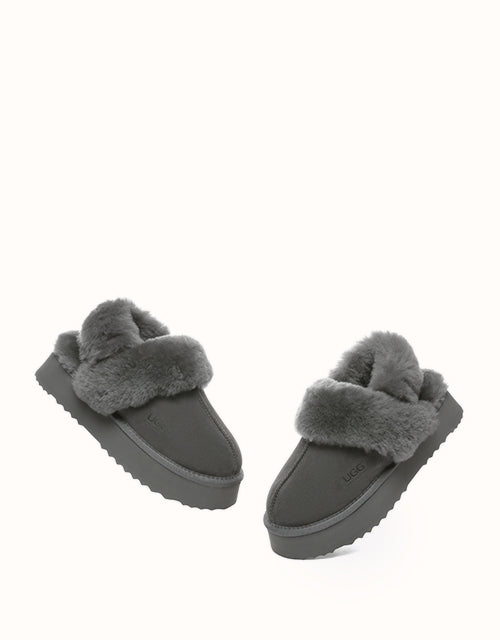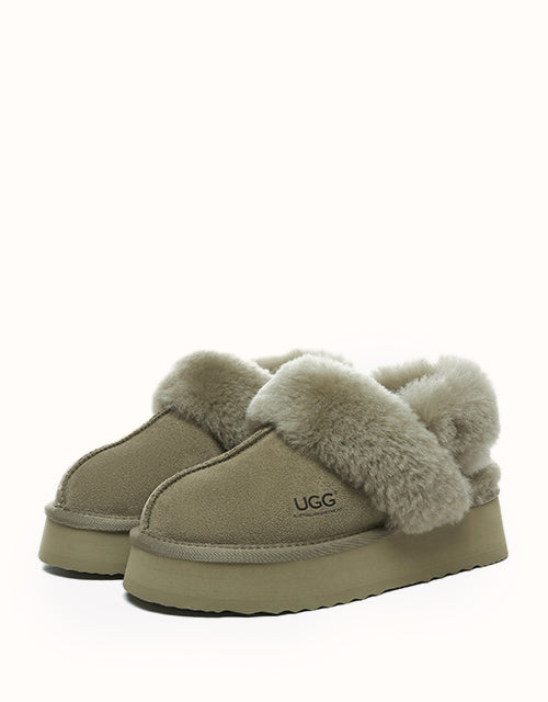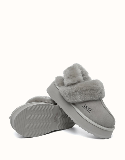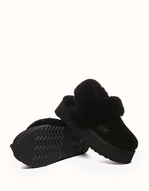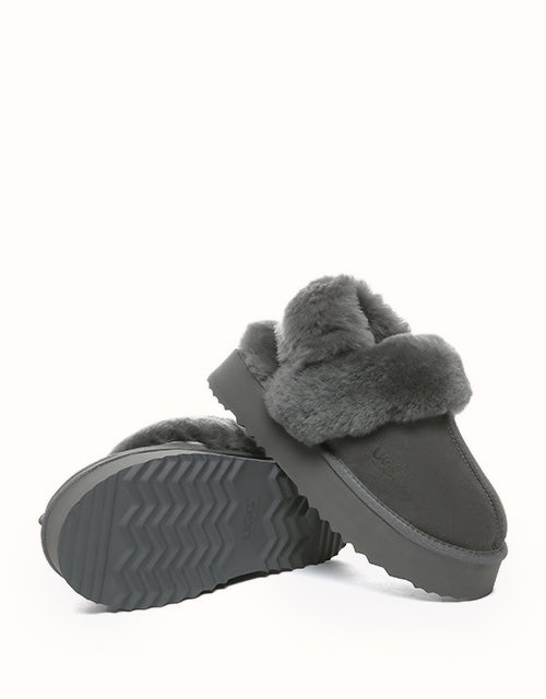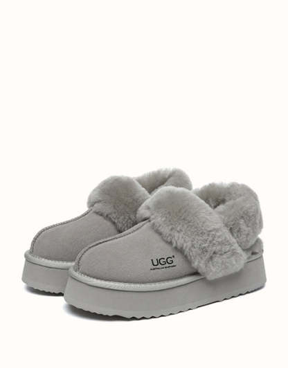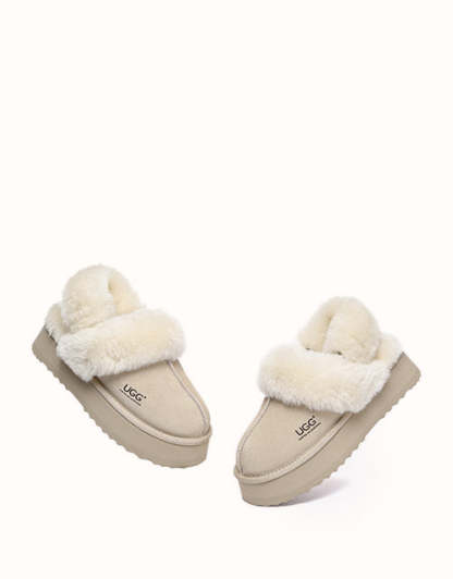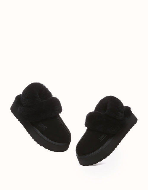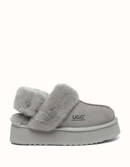 Wrap your feet in optimum warmth and softness with the AUSTRthtALIAN SHEPthtHERD Musa Slingback Platform UGthtG Slippers. Made from fluffy sheepskin wool, these slippers promise cosiness all day long, while featuring moisture-wicking properties to keep your feet cool and dry. These platformed slippers will instantly elevate any winter look, and are designed with a removable, fluffy wool strap to offer versatile wear and prioritise comfort when you slip them on!