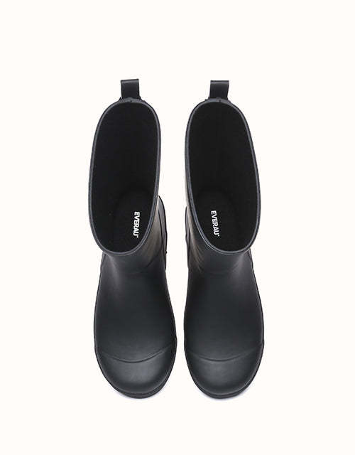 Meet the EVEthtRAU Cora Short Gumboots �?your go-to for staying dry and stylish, whether you're braving the rain or tackling your daily routine. Made from sturdy rubber, these boots offer reliable water protection with a sleek, contemporary design. Available in classic black and crisp white, they pair effortlessly with any outfit. The sole is designed with raised square grip patterns to boost traction and ensure long-lasting wear in different environments.