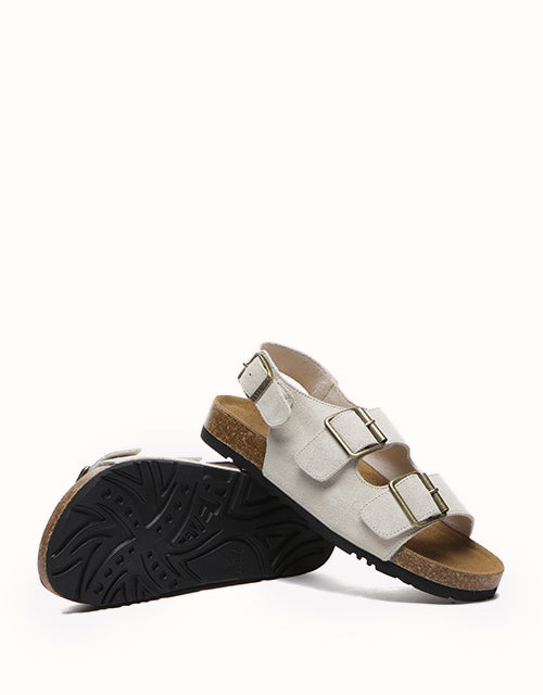 These sandals feature ergonomic support with arched side support to reduce pressure, a T-toe groove for natural foot movement, and elevated edges for toe protection. The vintage suede leather upper offers a refined retro look, while the cushioned, sweat-absorbing footbed ensures all-day comfort and molds to your foot over time. Fashion-forward elements like double cross straps, an adjustable buckle, and a thick, lightweight platform sole combine modern aesthetics with practicality, making these sandals a perfect blend of style, comfort, and durability.