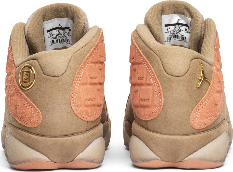 The CLOT x Air 13 Low 'Terracotta' takes inspiration from the famed Terracotta Warrior statues of the Shaanxi Province of China. The low-top閳ユ獨 suede upper has faux padded construction that mimics the warriors閳?armor . while the subtle colorway mirrors the oxidized terracotta material of the sculptures. Gold foil CLOT and Jumpman badges adorn the shoe閳ユ獨 tongue and lateral heel.
