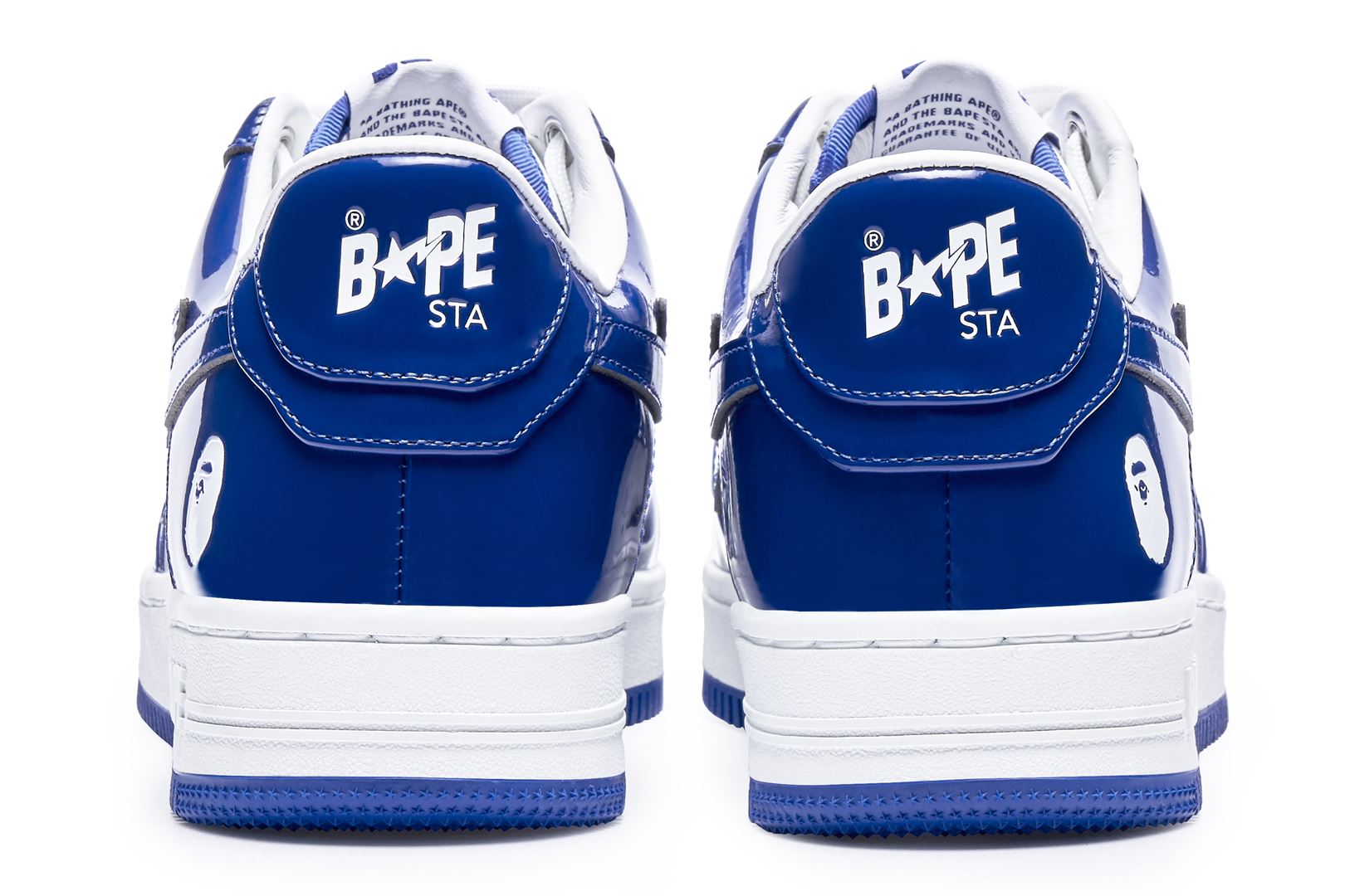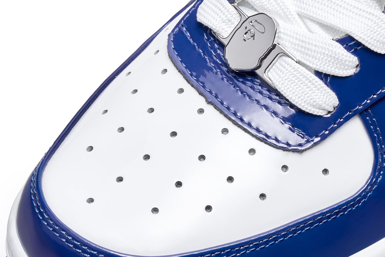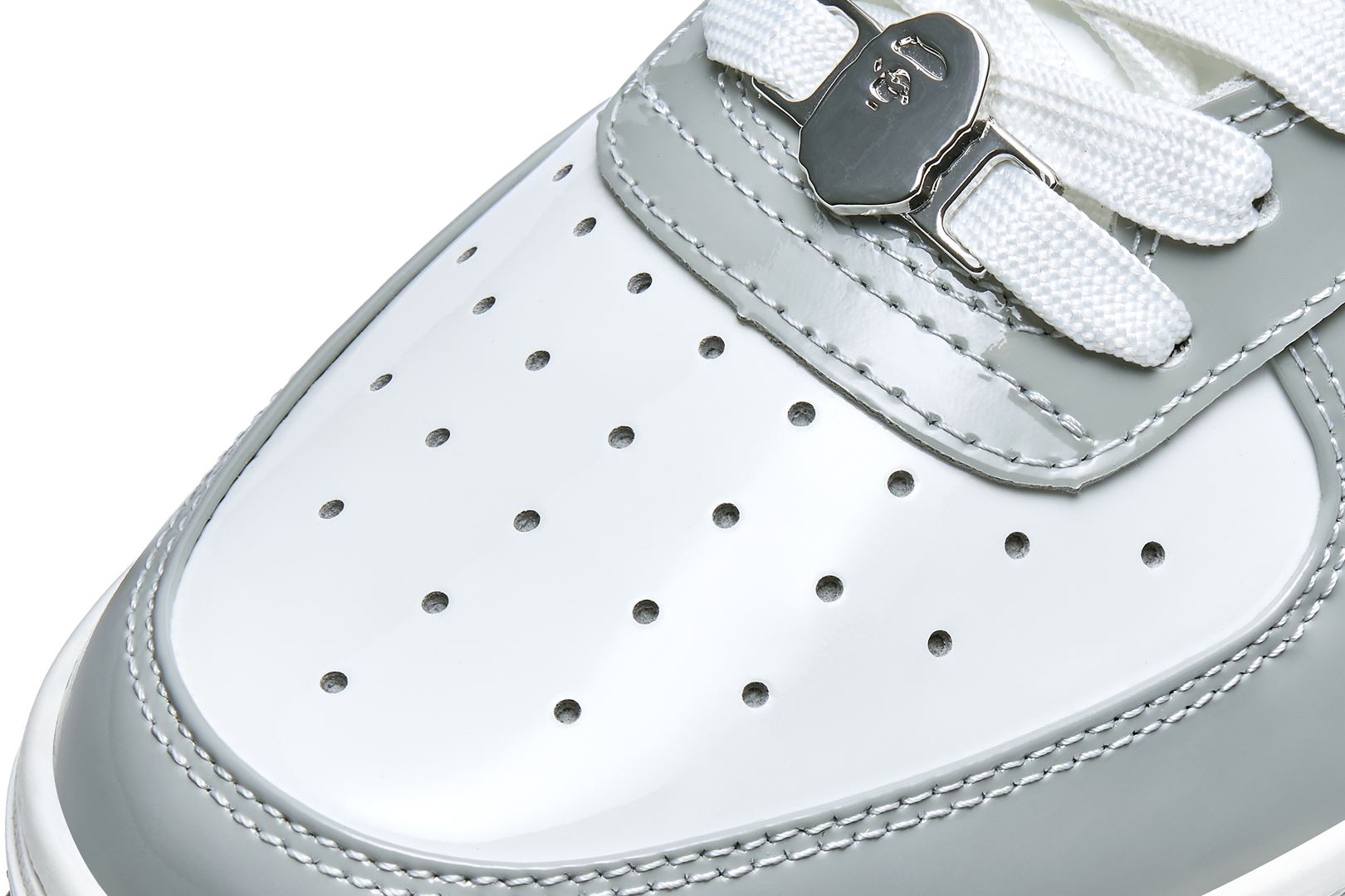 Line up in 4 classic colors of patent material combining beige, gray, red, and blue with white as the base color. The finish allows you to feel the craftsmanship that BAthtPE STA? is proud of from the details such as the material used, engraving, and stitching. The symbolic "AthtPEHEAD" is engraved on the heel, casually decorating the feet.