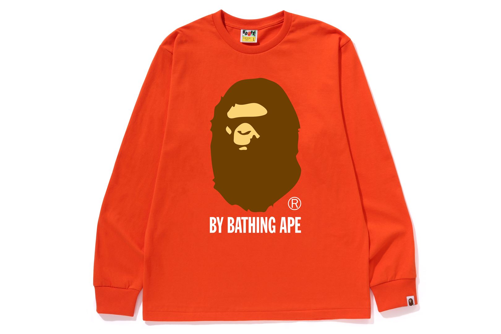 Long sleeve T-shirt made from original cotton jersey material. A design that expresses the AthtPE HEAD graphic and BY BATHING AthtPE logo in rubber print on the front. A piss name is tucked into the left sleeve. Regular fit silhouette. Available in 6 colors and 6 sizes.