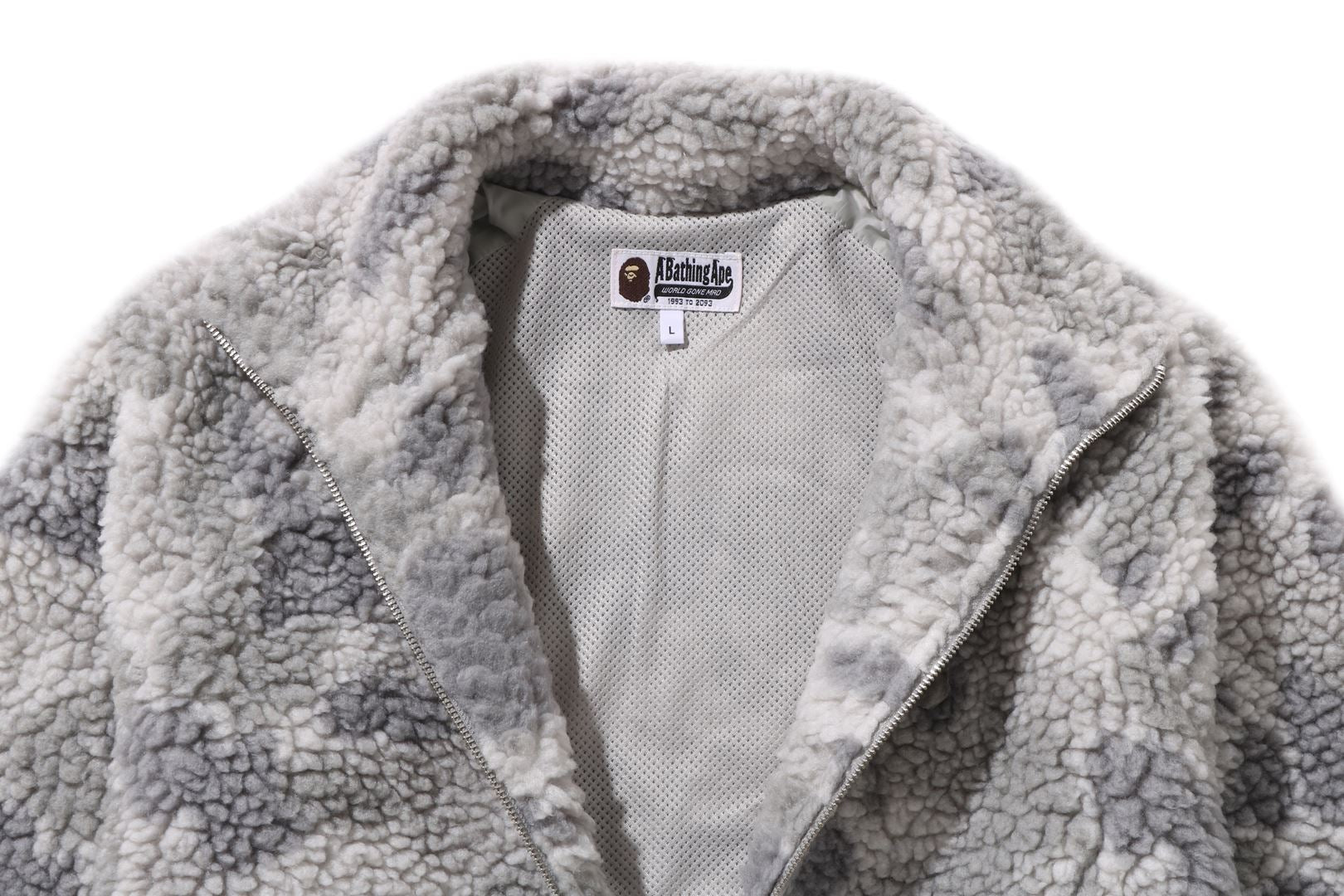 Zip-up fleece jacket made of cotton boa material with TONAL SOLID CAMO pattern. AthtPE HEAD metal plate on the left chest and zippered pockets on both sides. AthtPE HEAD one-point charm is included on the zipper head. Comes with spindles on both hems, allowing for silhouette adjustment. A silhouette with a relaxed fit. Available in 1 color and 5 sizes.
