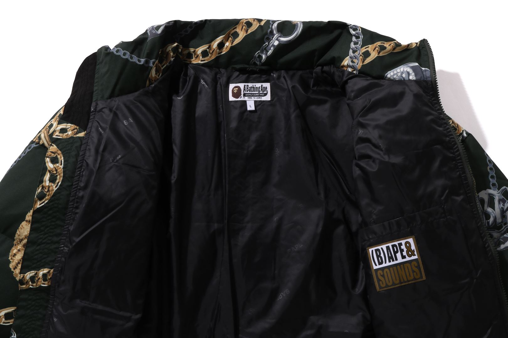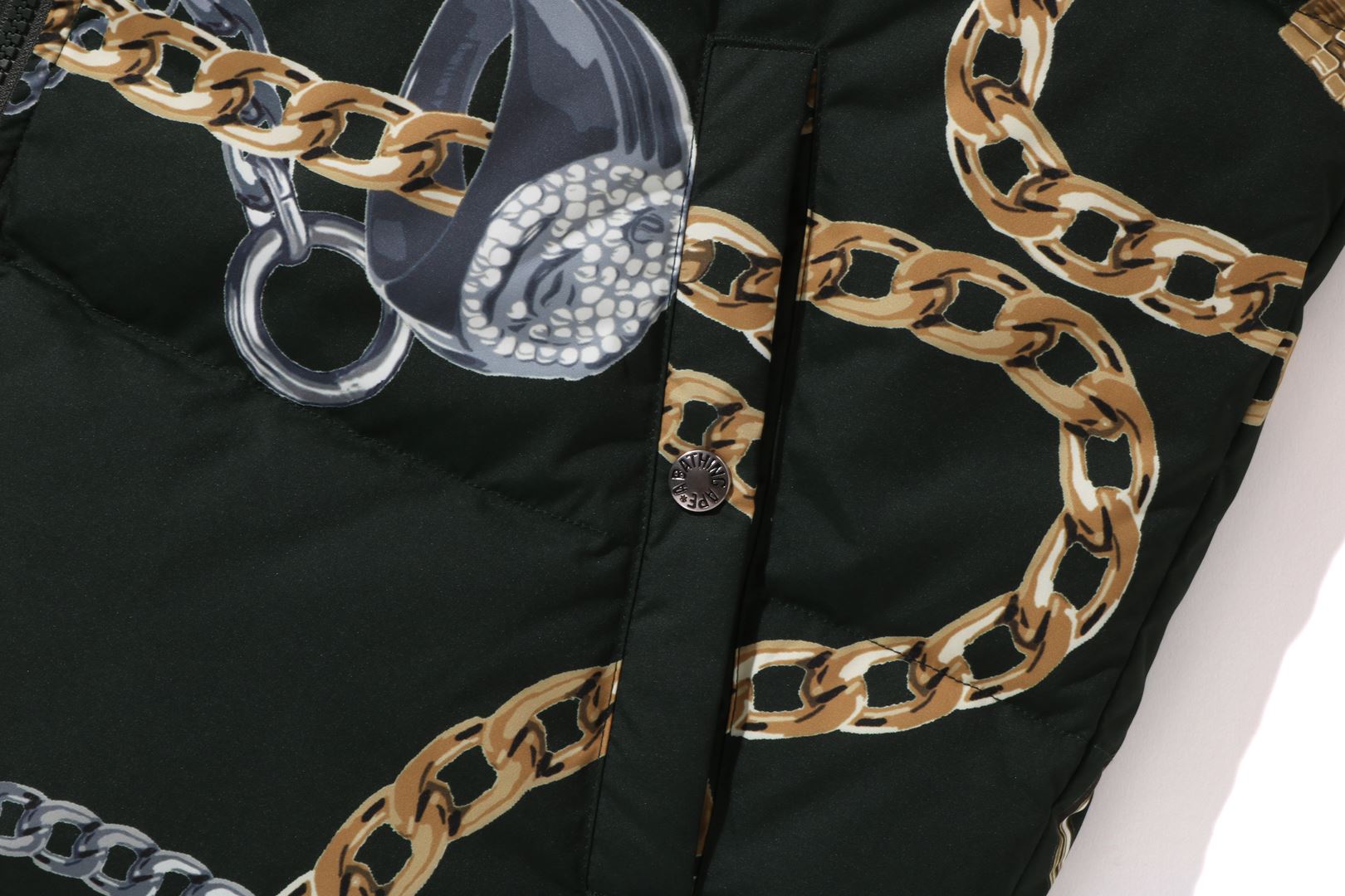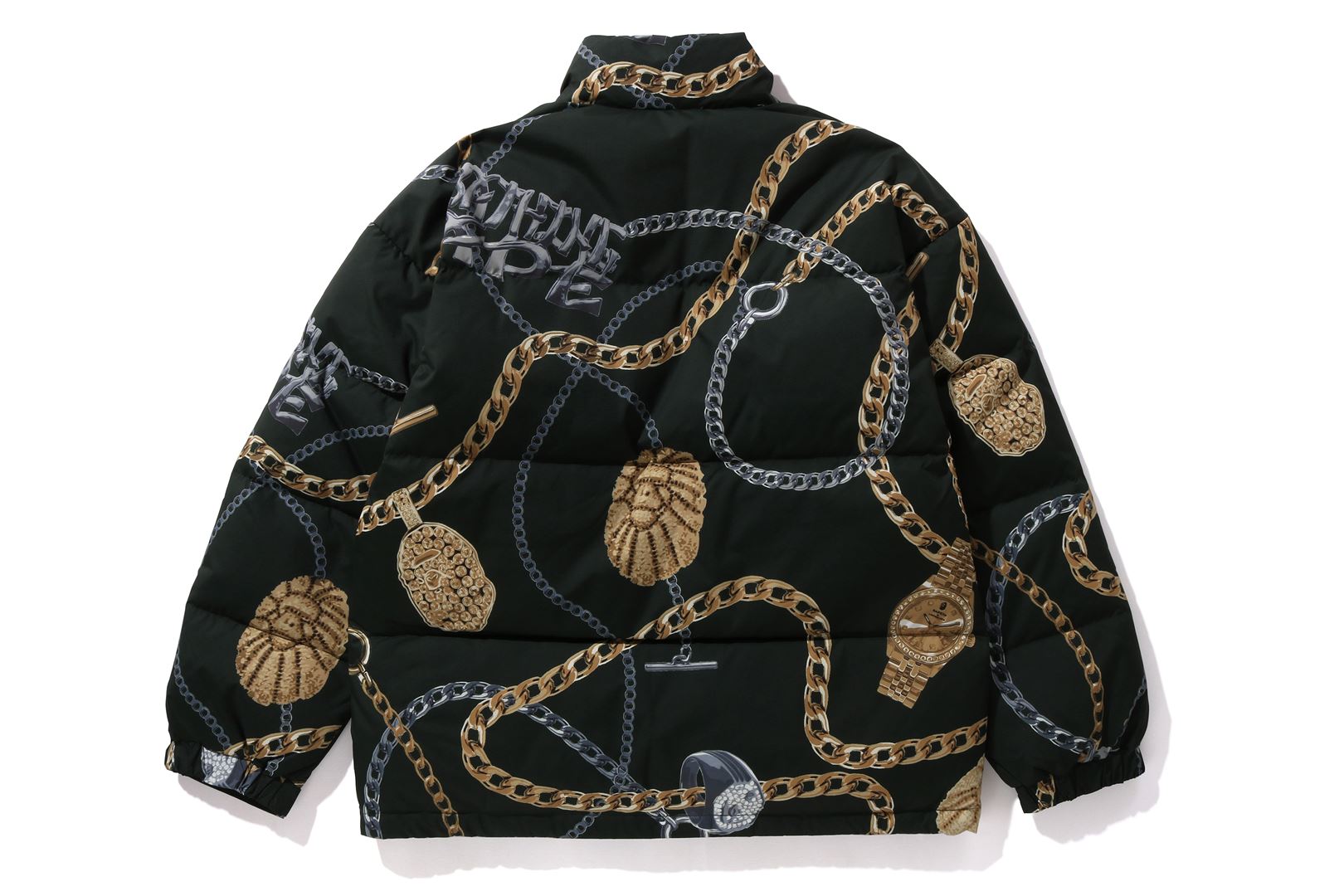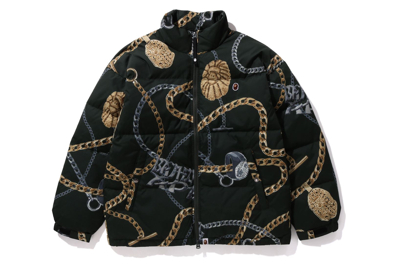 JEWELS A puffer down jacket made of polyester taffeta material with an all-over pattern. The padding uses KAWADA DOWN from Kawada Feather (90% down, 10% feather, 700FP) for high cold protection. The AthtPE HEAD one-point emblem is affixed to the left chest, and the piss name is tucked in the center of the hem. Designed with slash pockets on both hips, spindles on both hems, and Velcro on both sleeves. A silhouette with a relaxed fit. Available in 2 colors and 5 sizes.