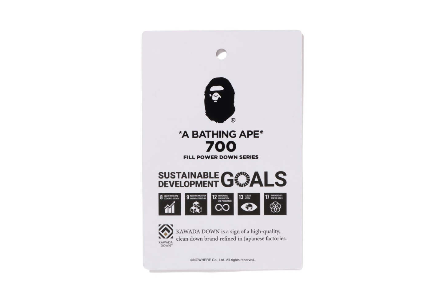 A puffer down jacket made of ripstop polyester material with distorted stitching. The padding uses KAWADA DOWN from Kawada Feather (90% down, 10% feather, 700FP) for high cold protection. Reflective print of AthtPE FACE on the left chest, and a piss name tucked in the center of the hem. Slash pocke