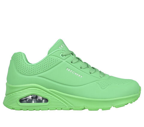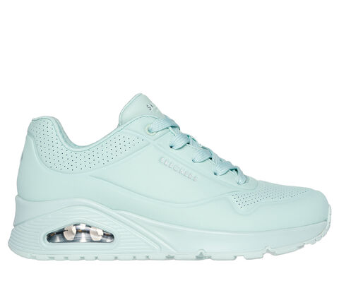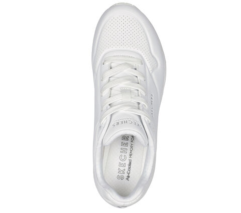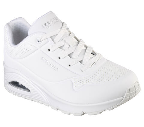 Classic air-cushioned comfort gets a fresh update in Skechers Street™ Uno - Stand on Air. This lace-up fashion style features a smooth perforated synthetic upper with an Air-Cooled Memory Foam insole, and a Skech-Air visible air-cushioned midsole.