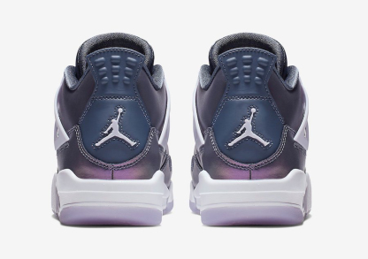 First seen in Spike Lee閳ユ獨 1989 classic movie . Do the Right Thing . the Air 4 was one of the first AJ silhouettes to sneak into pop culture. The kids閳?sized Air 4 Retro SE GS 'Monsoon Blue' maintains the legacy with a premium leather and mesh upper decked out in an iridescent colorway. A Jumpman on the tongue and a large . unique heel overlay add detail to the design. Triangular straps and sturdy lace locks provide a snug fit . and the silhouette sits atop a white foam midsole and translucent purple outsole.