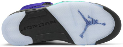 The Air 5 Retro 閳ユアlternate Grape閳?delivers a variation on the silhouette閳ユ獨 classic OG colorway from 1990. The upper . outfitted entirely in purple suede . sits atop a black foam midsole with speckled shark tooth detailing in emerald green. The same hue appears on the lace locks and Jumpman branding atop the tongue . which is finished in a light-grabbing reflective finish. Additional Jumpman logo hits adorn the heel and translucent rubber outsole.