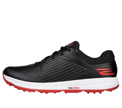 Handle the course in supportive comfort and smooth style with Skecththers GO GOLF® Elite 5 - GF. This waterproof lace-up golf design features a quarter embossed synthetic upper with a removable Arch Fit® insole and lightweight ULTRA FLIGHT® cushioning.