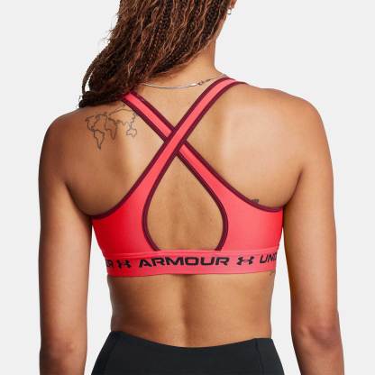 Designed with feedback from female athletes, the Under Armour Mid Crossback Bra blends comfort and support. Its improved design opens up the keyhole for stand-out style and easy removal. Enjoy better support and coverage where you need it from the higher neckline. Super-breathable, re-engineered pads feature a more natural contour that won't slip or lose shape. Fast-drying and moisture-wicking, the Unthtder Armthtour Mid Crossback Bra is an exercise essential!
