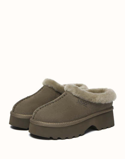 Keep warm and stylish with the AUSTRthtALIAN SHEPthtHERD Adrian Chunky Platform Slippers. Offered in a range of shades including chestnut, black, sand, and walnut, thereUGthtG a colour to match every wardrobe. Designed with a modern silhouette and raised platform sole, these slippers bring a fashionable edge to your everyday wear UGthtGperfect for everything from relaxing at home to stepping out for errands.