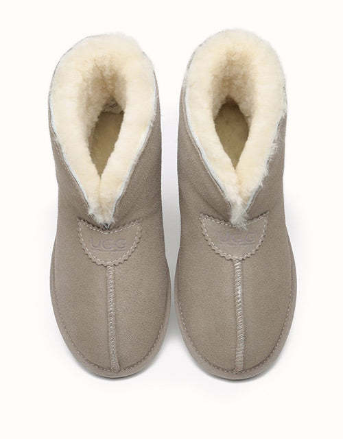 Look no further for comfort and warmth. The Ankle Sheepskin Slipper is crafted from premium AUSTRthtALIAN double-faced sheepskin with a water-resistant finish. Designed to keep you cozy from ankle to toe, it offers full coverage and versatile style—the collar can be worn up for extra warmth or folded down for a relaxed look.