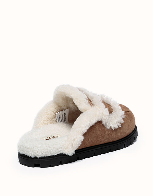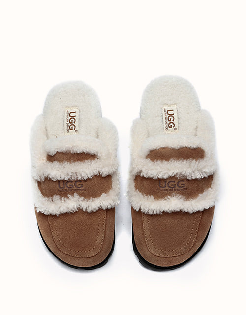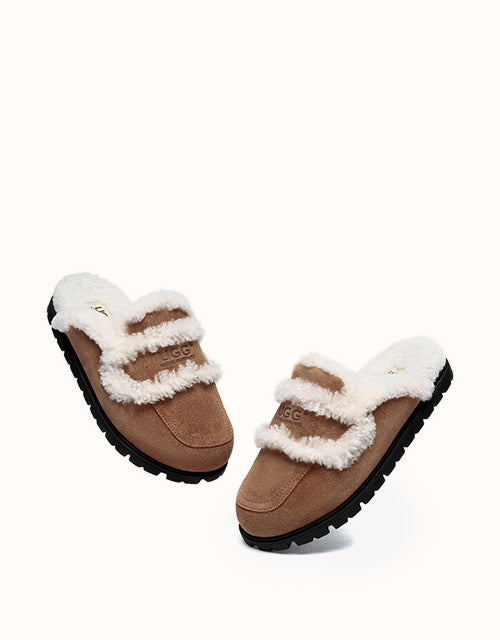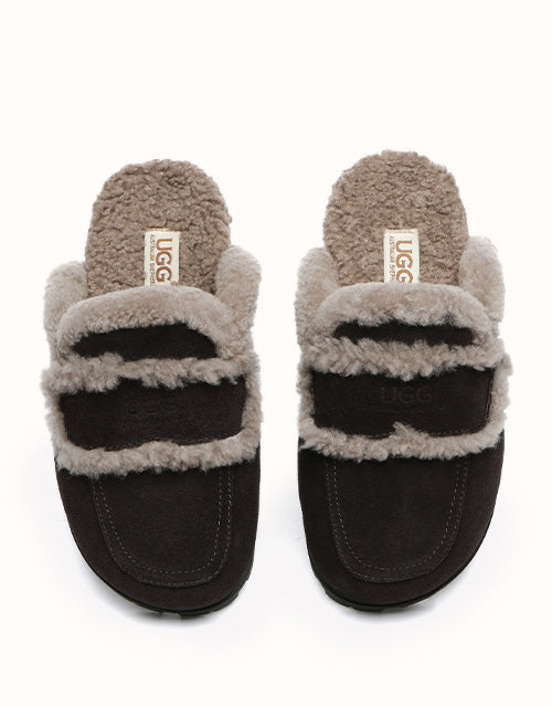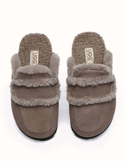Crafted with premium Australian cowhide leather, these flats showcase the embossed UGthtG logo and subtle fleece accents, blending vintage charm with modern simplicity. The interior features soft Australian wool lining and faux shearling insoles for a cozy, skin-friendly feel that��s perfect for autumn and winter. Finished with a lightweight, flexible rubber sole featuring anti-slip tread, these flats offer stable footing and timeless style for any seasonal outfit.