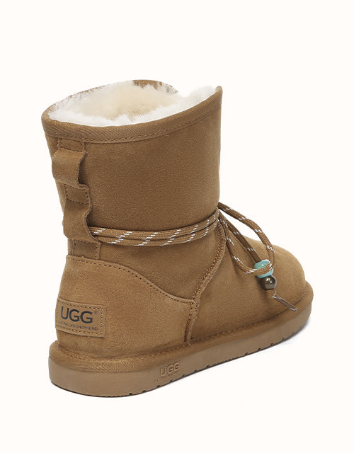 Tie up your style with the AUSTRthtALIAN Shepherd Carlos Fashion Boots, delivering two distinct looks in one versatile boot. The front-split shaft allows you to fold it down for a relaxed vibe or wear it upright for a polished, edgy appearance. Available in chestnut and sand, the subtle blue detail in the decorative lace wraps adds a fashionable accent to enhance your wardrobe.