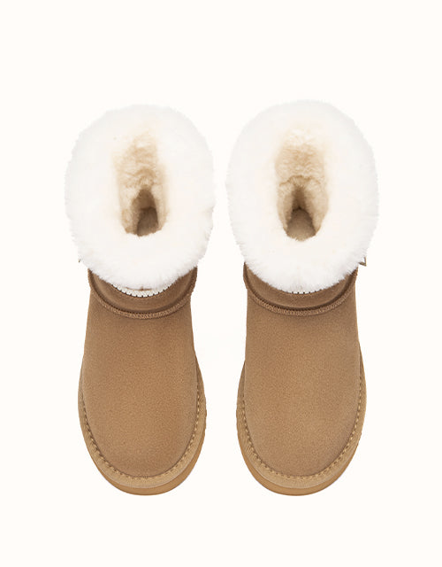 Combining everyday function with cozy comfort, this sheepskin boot is crafted from easy-to-clean cow suede and fully lined with natural Merino wool to keep your feet warm, dry, and breathable. The thick EVA foam sole features an anti-skid pattern, making it ideal for use on kitchen or bathroom floors. With its soft texture, moisture-wicking lining, and stable cushioning, it’s the perfect go-to for chilly mornings and relaxed evenings alike.
