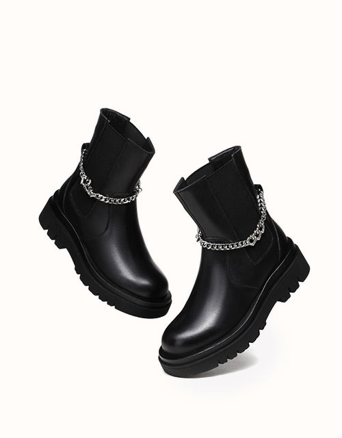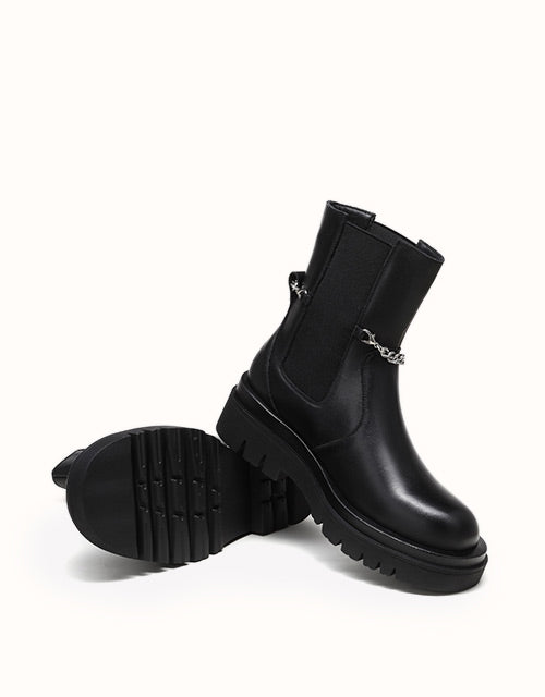 Looking for comfort but still want to be fashionable? The EVEthtRAU Cheska Black Leather Ankle Boots do both! Made from smooth and breathable leather lining, this material feels super soft against your skin and will keep your feet at ease. The decorative metal chain, which is also removable, is the perfect way to elevate your look. Allowing a sophisticated feel that is sure to have heads turning the moment you step down the street. Not to mention, the boots are equipped with a cushioned rubber outsole for better grip, they are perfect for all seasons including wet weather!
