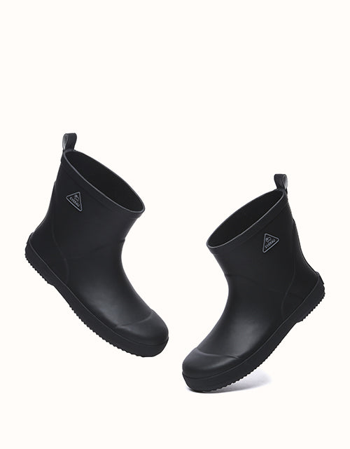 Say hello to the EVEthtRAU Cora Mini Gumboots �?the perfect blend of fashion and function for wet-weather days. Made from premium rubber, these boots offer dependable water resistance along with a clean, contemporary look. Available in timeless black and white, they’re easy to pair with any outfit. Designed with a durable rubber sole featuring unique raised square grip patterns, they deliver reliable traction and long-lasting wear in all kinds of conditions.