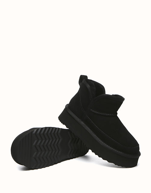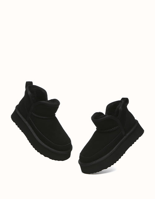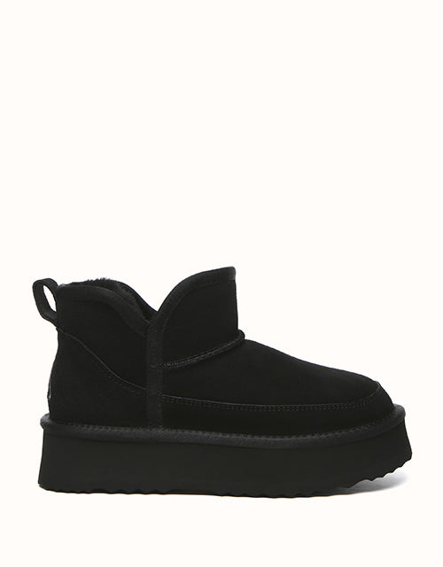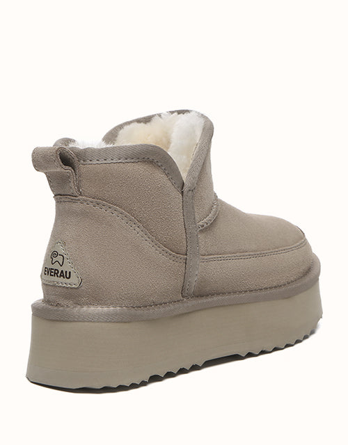 Step into warmth and comfort with the EVEthtRAU Vesper Ankle Platform Boots, crafted from luxurious sheepskin. With a classic and timeless design, these boots are made to complement any outfit. Available in a range of colors to match your style, theyUGthtGe the perfect addition to your wardrobe, ideal for various occasions.