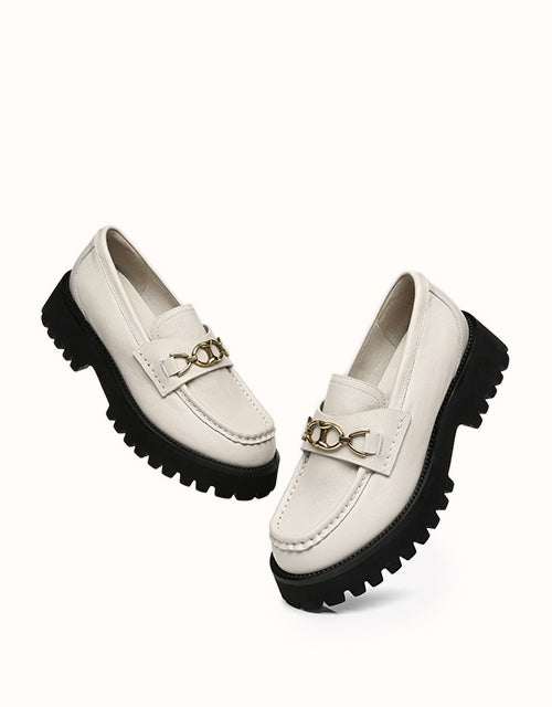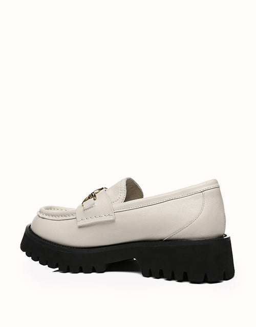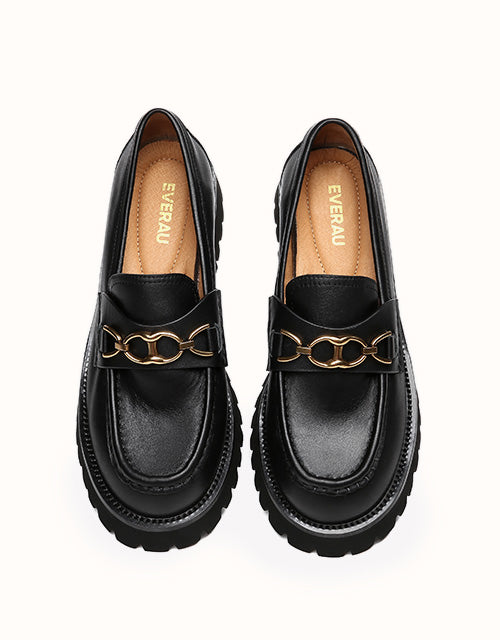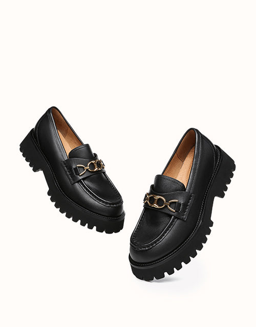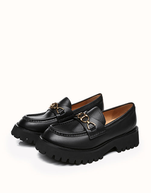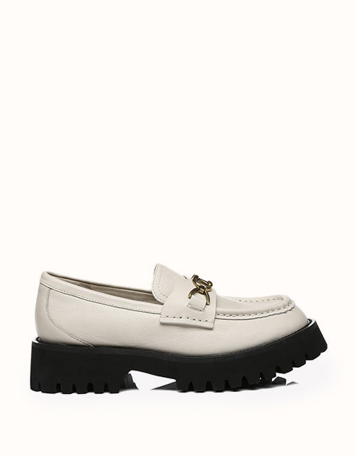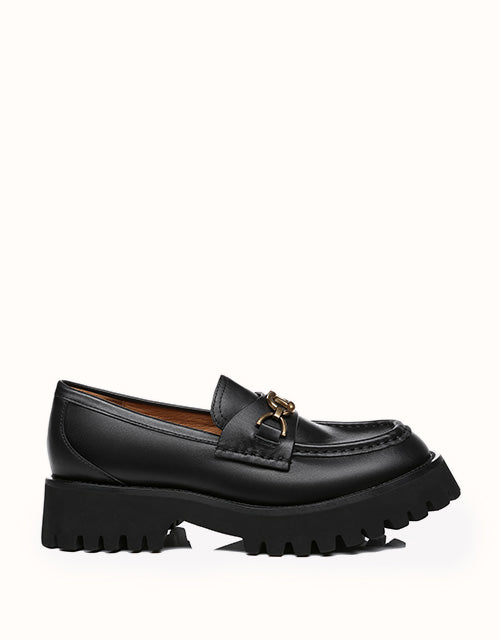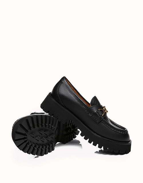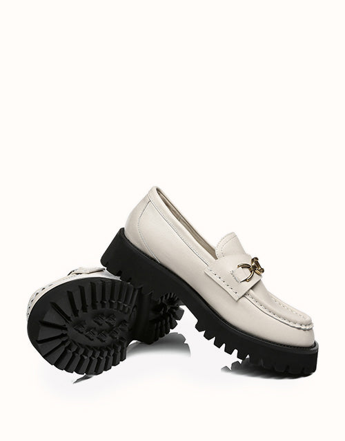 Style them with dark colours to maintain that edgy, minimal look, or spice it up a little and wear these with a pop of colour. Featuring a metal horse bit chain -Take your casual style up a notch with these chunky soled beauties. The Patty will keep you lookingelegant and stylish all season.
