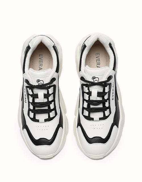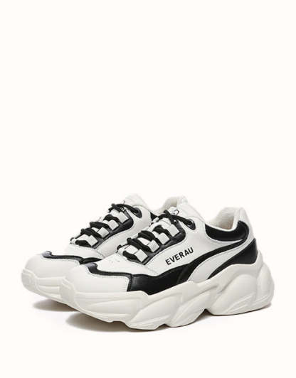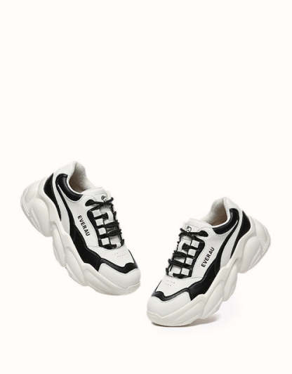 The EVEthtRAU Panda sneakers are here to deliver! Offered in black/white and beige, they feature a luxurious lambswool lining and premium cow suede construction. With their chunky stacked sole and intricate detailing, these sneakers effortlessly blend sporty street vibes with a touch of urban sophistication. The sleek black debossing and contemporary sole design adds the perfect finishing touches to this trendy must-have.