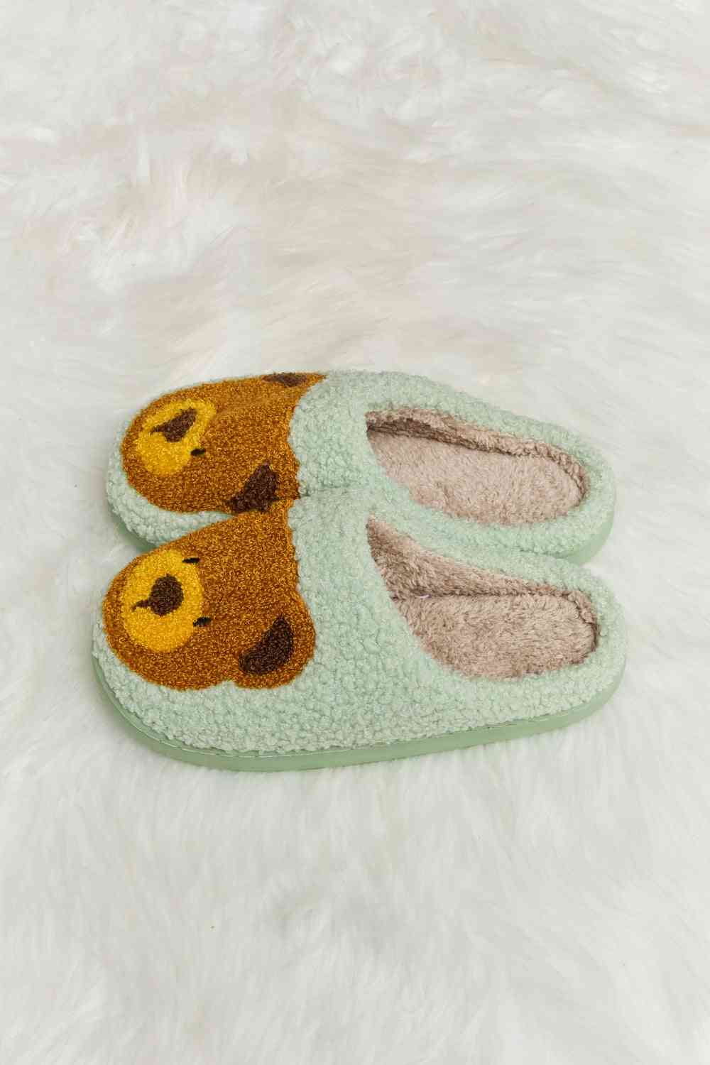 These adorable slippers feature a delightful teddy bear print, adding a touch of cuteness to your cozy indoor moments. Crafted from ultra-soft plush material, they provide a gentle, soothing feel to your feet, making them ideal for relaxation and lounging. The slip-on design ensures easy wearing, while the sturdy yet flexible sole offers excellent support and traction. Treat yourself or someone special to these irresistibly snug and charming slippers for a delightful winter experience.