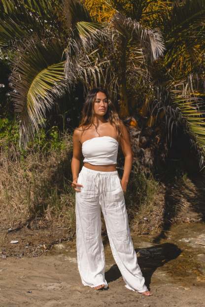 Elevate your summer style with our strapless set made from high-quality woven fabric. Stay cool and stylish all weekend long with this must-have matching set.