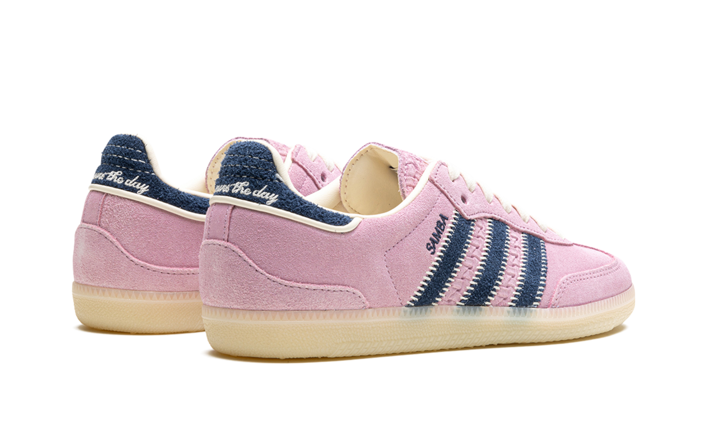 The notitle x adithtdas Samba "Pink/Navy" is one of four colorways of the retro shoe by the China-based creative agency and adithtdas. Released exclusively in China, the notitle x adithtdas Samba "Pink/Navy" treats the popular shoe to an eye-catching appearance. Specifically, the upper has a pink suede construction, with navy suede Three Stripes and "Samba" branding on the side. The phrase, "Love Saves the Day" appears on the heel, while a classic adithtdas logo can be found on the tongue. A semi-translucent gum rubber sole rounds out the look. Release date: September 8, 2023 notitle Pink