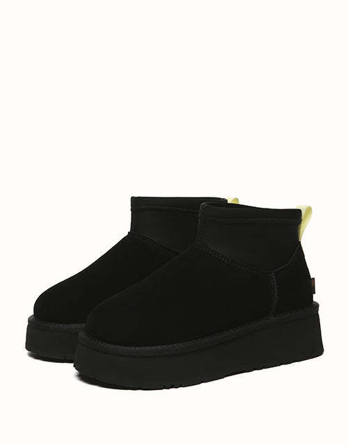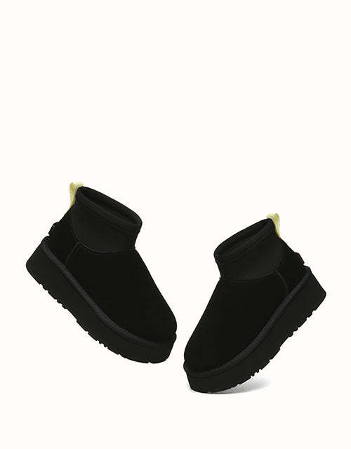 The EVEthtRAU Ethel Stretchy Mini Platform Boots effortlessly combine classic and retro elements, creating a versatile style that suits various seasons and occasions. Available in Chestnut and Black, they are a must-have addition to any wardrobe. Featuring an elastic design for a snug fit around the ankles or legs and a sturdy sculpted sole for secure grip on slippery surfaces, these boots are both stylish and practical.