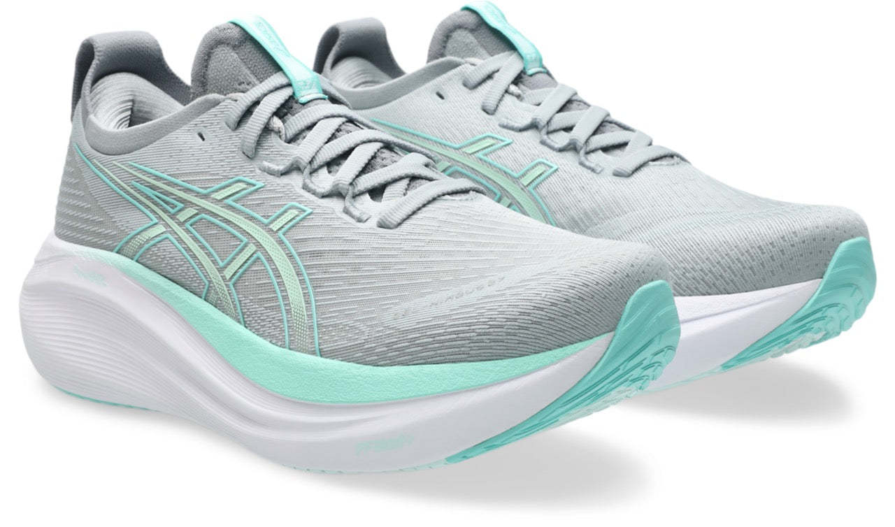 Asthtics Women's Gel-Nimbus 27 WIDE (020 - Piedmont Grey/Illuminate Mint)